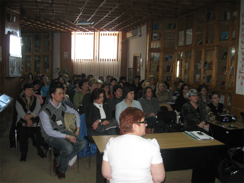 A urmat expunerea bibliotecarei Cateluţa Barbu de la Biblioteca Comunală Raciu, proaspăt absolventă a cursului Dezvoltarea serviciilor de bibliotecă. Prezentarea a cuprins, printre altele, misiunile bibliotecii publice, publicul şi nevoile sale actuale, bibliotecarul de tip nou, organizarea spaţiului bibliotecii etc.