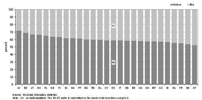 Distribuţia în funcţie de gen a persoanelor cu studii universitare finalizate în UE (2009) |