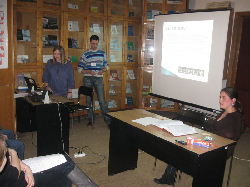 Gazda noastră, prof. Carmen Vădan, director Biblioteca Judeţeană „Ion Heliade Rădulescu” Dâmboviţa şi coordonator evenimente externe în cadrul Centrului EUROPE DIRECT Târgovişte a subliniat importanţa voluntariatului în dezvoltarea oricărei comunităţi, care depinde într-o largă măsură de interesul pe care membrii acesteia îl manifestă faţă de problemele sale, de atitudinea pro-activă a acestora şi mai ales faţă de identificarea unor soluţii creative pentru depăşirea lor. În general, se poate afirma faptul că un indiciu mereu edificator al gradului de implicare îl reprezintă acţiunea voluntară. În acest sens, sub titulatura Voluntar în sprijinul comunităţii dâmboviţene, managerul Bibliotecii Judeţene Dâmboviţa a prezentat o serie de programe şi evenimente ce vor fi implementate şi dezvoltate pe parcursul Anului European al Voluntariatului cu şi pentru tineri.