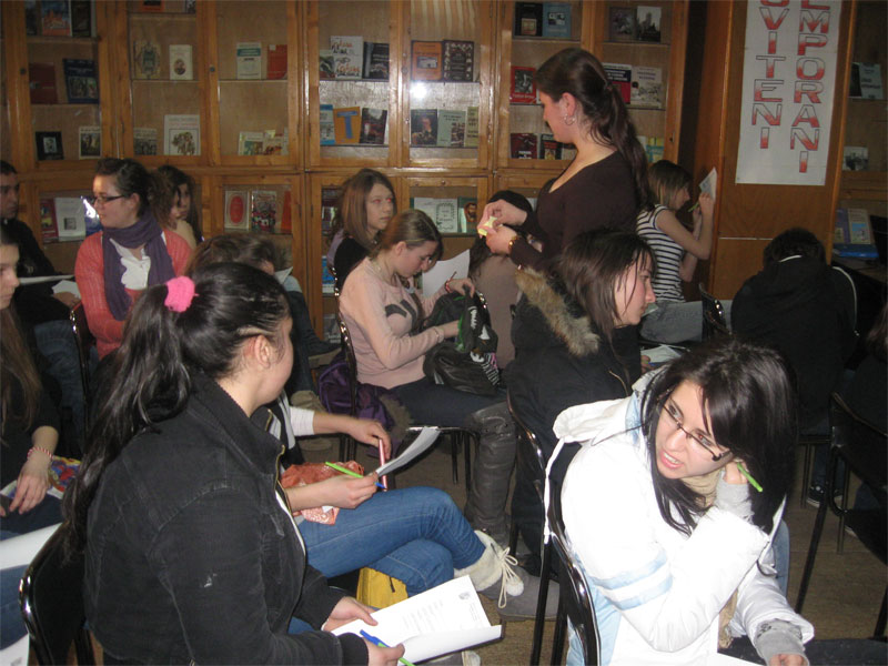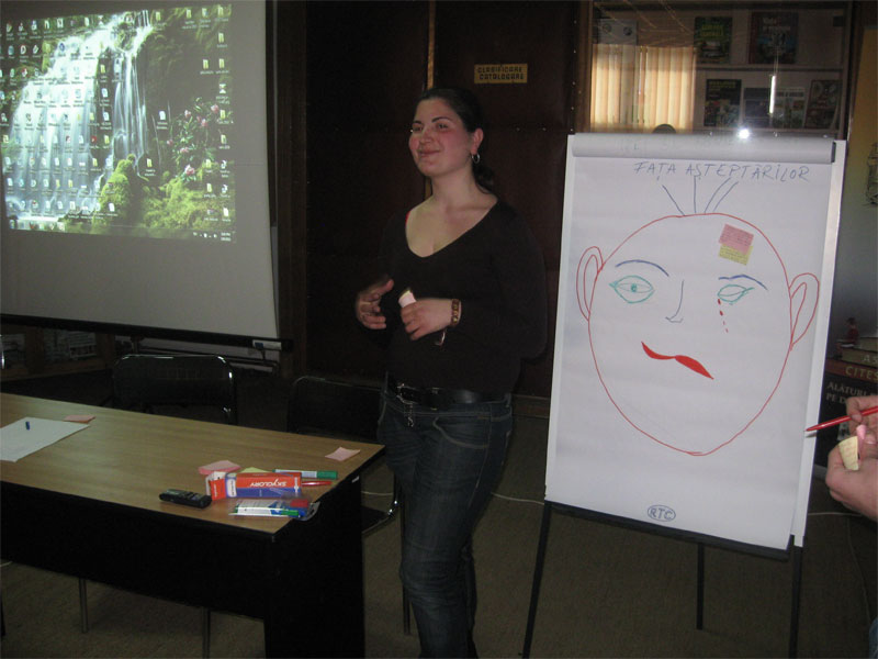 Membrii ai Grupului Informal de Tineri Dâmboviţa (voluntari EUROPE DIRECT),au prezentat celor prezenţi reuşitele lor în cadrul proiectului finanţat de Comisia Europeană Dâmboviţa – tineri voluntari în lupta împotriva excluziunii sociale, în cadrul căruia elevi de liceu şi studenţi, tineri cu vârste cuprinse între 16 şi 24 de ani sprijină incluziunea socială a 12 tineri proveniţi de la Centrul de Reeducare Minori Găeşti. Jocurile distractiv-educative nu au lipsit nici de această dată, voluntarii EUROPE DIRECT exprimând de această dată prin Faţa aşteptărilor împlinirile şi nerealizările lor pe parcursul derulării programului de voluntariat în cadrul Centrului.