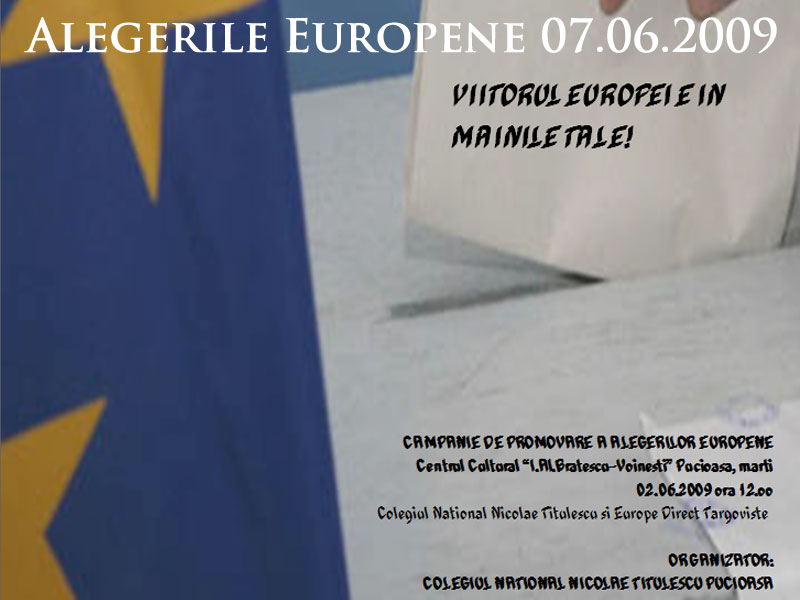 La Colegiul National « Nicolae Titulescu », Pucioasa, un grup de elevi impreuna cu 2 profesori au initiat o campanie de promovare a alegerilor euro-parlamentare in cadrul competitiei Euroscola. Parlamentul European a creat programul Euroscola pentru a informa tinerii despre procesul de integrare europeană şi pentru a promova participarea lor la construcţia Uniunii Europene.