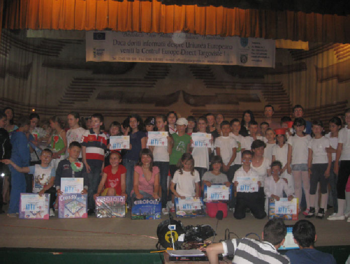 Sub denumirea Suntem copii ai Europei, acțiunea s-a concretizat printr-un complex de concursuri la care au participat 13 delegații formate din elevi de clasa a III-a și a IV-a de la școli dâmbovițene. Aceștia au reprezentat fiecare câte o țară a Uniunii Europene, iar sarcina lor a fost să prezinte țara, astfel încât să convingă juriul că merită să câștige. După ce au fost supuși la mai multe probe, printre care creație literară, muzică, desen și probe sportiv-distractive, cei mai buni s-au dovedit a fi elevii de la Școala Ioan Alexandru Brătescu-Voinești Târgoviște, care au reprezentat Marea Britanie. Ei au fost secondați de Școala cu clasele I-VIII Cricov, reprezentanta Olandei, iar locul trei a fost adjudecat de către Școala cu clasele I-VIII Perșinari, ambasadoarea Italiei.