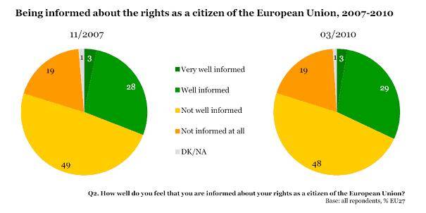 Cu toate acestea, deşi peste o treime (35%) din lucrători ar lua în considerare ocuparea unui loc de muncă în alt stat membru, aproape unul din cinci este de părere în continuare că există prea multe obstacole în calea realizării efective a acestui lucru. Pe lângă dificultăţile de natură lingvistică, lipsa cronică de informaţii este cel mai important obstacol în calea navetei transfrontaliere în scopuri profesionale. Un studiu din 2010 a arătat că, în continuare, un număr mult prea mare de persoane simt că nu sunt informate în mod adecvat cu privire la diferitele drepturile pe care le au la dispoziţie: doar 43% cunosc semnificaţia termenului „cetăţean al Uniunii Europene” şi aproape jumătate din cetăţenii europeni (48%) indică faptul că nu sunt „bine informaţi” cu privire la drepturile lor (a se vedea anexa). În plus, Raportul pe 2010 privind cetăţenia UE (a se vedea IP/10/1390 şi MEMO/10/525) a arătat că, în realitate, există în continuare numeroase obstacole care împiedică sau descurajează cetăţenii să se mute în străinătate. Raportul a evidenţiat 25 de acţiuni concrete pentru a elimina obstacolele rămase. Una dintre acestea este aceea de a „susţine o mai bună cunoaştere de către cetăţeni a statutului de cetăţeni UE, a drepturilor pe care le au şi a semnificaţiei acestui lucru în viaţa lor de zi cu zi, propunând ca 2013 să fie desemnat drept Anul european al cetăţenilor şi organizând, în anul respectiv, evenimente pe tema cetăţeniei UE şi a politicilor UE care se adresează cetăţenilor”. Anul european al cetăţenilor va fi caracterizat prin continuarea acţiunilor puse în aplicare ca urmare a Raportului privind cetăţenia UE: în 2013, Comisia va publica un plan de acţiune pentru finalizarea eliminării obstacolelor rămase care împiedică cetăţenii să beneficieze de drepturile lor în calitate de cetăţeni ai Uniunii. Prin desemnarea anului 2013 drept