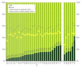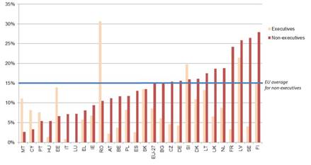 Un raport al Comisiei din luna martie 2012 a arătat că, în întreaga Uniune Europeană, consiliile de administrație ale întreprinderilor sunt în prezent dominate de un singur sex. Există, de asemenea, mari diferențe între țări: numărul femeilor care fac parte din consiliile de administrație ale celor mai mari întreprinderi este de 27 % în Finlanda și de 26 % în Letonia, în timp ce în Malta această cifră este de doar 3 %, iar în Cipru de 4 %.