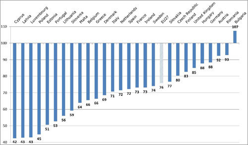 În anul 2012, în 12 state membre (Belgia, Cipru, Danemarca, Finlanda, Franța, Irlanda, Lituania, Luxemburg, Olanda, Spania, Suedia și Marea Britanie), ponderea persoanelor cu vârste între 30 și 34 de ani absolvente de studii superioare a fost mai mare decât obiectivul de 40 % preconizat în Strategia Europa 2020. Polonia și Slovenia vor depăși cu siguranță acest obiectiv anul viitor. Proporția tinerilor absolvenți de studii superioare rămâne scăzută în Italia (21,7 %), Slovacia (23,7 %), România (21,8 %), Malta (22,4 %), Republica Cehă (25,6 %) și Portugalia (27,2 %). Situația cea mai îngrijorătoare o prezintă Bulgaria, unde procentul deja scăzut al absolvenților de ciclu terțiar (26,9 %) a cunoscut o ușoară scădere în 2012.