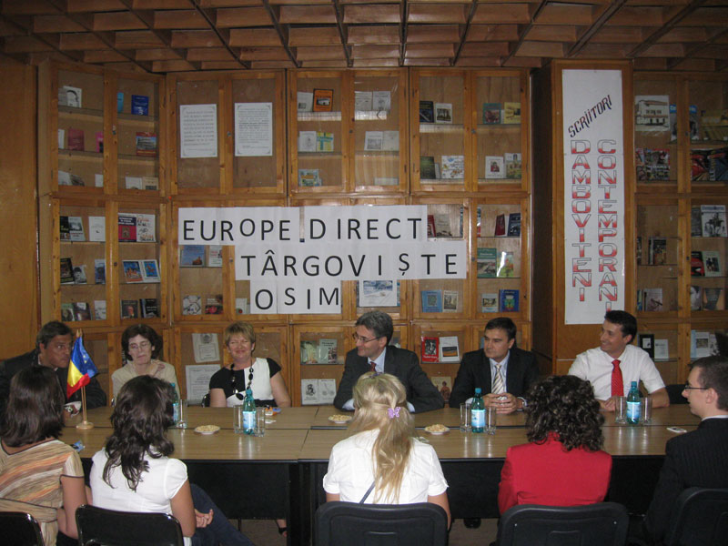 "Ce faceţi, vă distraţi?" Aceasta a fost prima întrebare adresată voluntarilor Centrului EUROPE DIRECT Târgovişte, de către Comisarul European Leonard Orban. Răspunsul nu a întârziat să vină; fiind unul pozitiv, voluntarii au continuat să fie bombardaţi şi cu alte întrebări: De cât timp sunteţi voluntari? De ce sunteţi voluntari? Ce faceţi ca voluntari în cadrul Centrului? şi aşa mai departe... Răspunsurile nu au întârziat nici de această dată. Atmosfera s-a încadrat într-un mediu mai neformal, voluntarii povestind despre toate activităţile la care au participat de la inaugurarea centrului până în prezent: Ziua Tineretului, Ziua Europei, Ziua Copilului, Caravana Copiii Colorează Viaţa, Campania de Ecologizare Recycle, Raft & Race, Şcoala de Vară Proprietatea intelectuală şi stimularea creativităţii şi altele. Fiecare dintre voluntari aducând în discuţie evenimentul preferat.