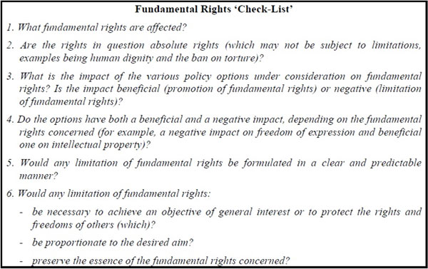 Anexa 3: „Lista de verificare a respectării drepturilor fundamentale” prevăzută pentru propunerile Comisiei