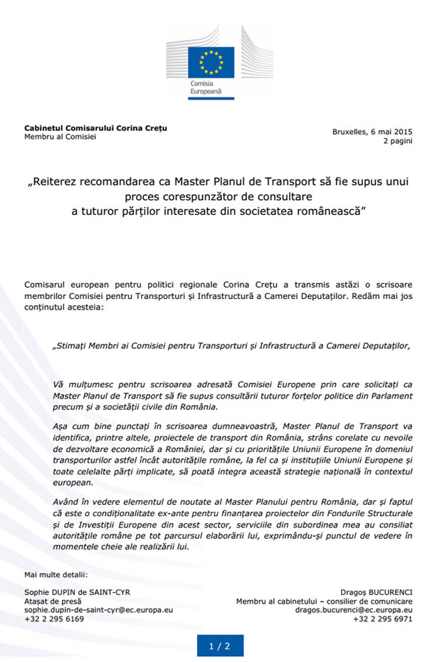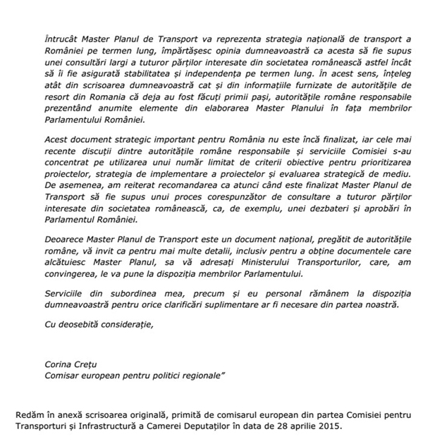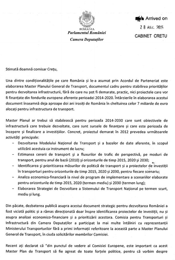 07.05.2015 - Scrisoare - Comisia de Transport a CD