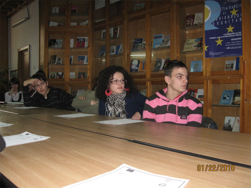 Centrul EUROPE DIRECT Târgovişte urmăreşte să difuzeze informaţia europeană prin reţeaua bibliotecilor din judeţ, dar şi cu ajutorul elevilor voluntari, care vor deveni vectori de informaţie atât în şcolile din care provin cât şi în comunitate. În acest sens, azi, 22 ianuarie 2010, a avut loc selecţia voluntarilor din şcoli şi licee din judeţ. Aceştia vor sprijini activităţile centrului ce se vor derula în acest an.