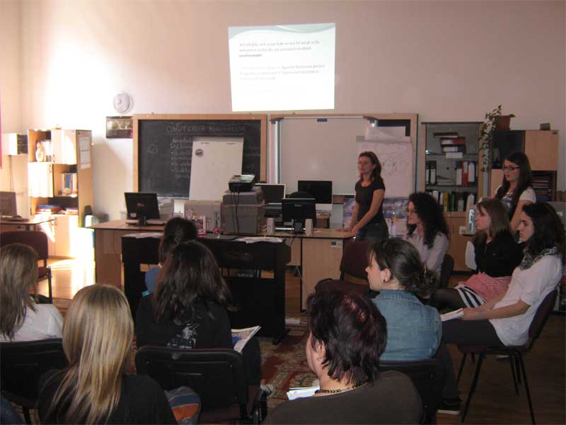 În luna martie noi, voluntarele Centrului EUROPE DIRECT Târgoviște, eleve la Colegiului Economic “Ion Ghica” Târgoviște: Lăzăroiu Andreea, Iancu Ionela, Manolache Ana-Cristina, Oproiu Mihaela și Vasile Ioana Cristina am hotărât să adăugăm la lista punctelor de informare europeană un al 25 –lea în cadrul liceului nostru. Cu această ocazie, am realizat o activitate de prezentare a activităților centrului, ora de informare europeană. Alături de noi au fost: prof. Ilie Suzana, director Colegiul Economic “Ion Ghica” Târgoviște, prof. Carmen Vădan, director Biblioteca Județeană “Ion Heliade Rădulescu” Târgoviște, Vlăduț Andreescu, manager Centru Europe Direct Târgoviște.