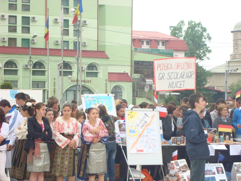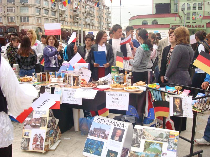Cum s-au pregătit participanții? De la foarte bine în sus! Fiecare liceu a trimis câte o delegaţie formată din 5 elevi care au reprezentat un stat al Uniunii Europene; ei au adus mâncare tradiţională, băutură specifică zonei, poze, panouri, pliante, ghiduri turistice şi multe alte idei năstrusnice care le-au mai năzărit. Spectacolul a inceput cu un mic program artistic pregătit de partenerii Centrului, urmând ca ambasadorii delegaţiilor să îşi prezinte ţara şi standul. Fiecare echipa a primit câte o temă pentru interpretarea unei scenete amuzante, din care toti au ”scăpat” cu brio. Spre final, înaintea probelor sportive (dansul cu portocala, cursa cu oul în lingură), delegaţii ne-au pregătit şi ei un moment artistic şi, cu această ocazie, am descoperit că fiecare liceu are câte o mică (mare) vedetă.