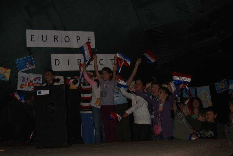 Si cum „ideea” concursului era de a-i face pe cei mici sa se simta bine si sa se imprieteneasca, a urmat proba „de cantec”, iar copii au dansat pe ritmurile sustinute de echipajele lor. Concomitent cu aceasta s-a desfasurat si concursul de desen pe tema „Suntem copii ai Europei: Cum vad eu Europa?”, iar micii scolari ne-au uimit cu talentul lor.