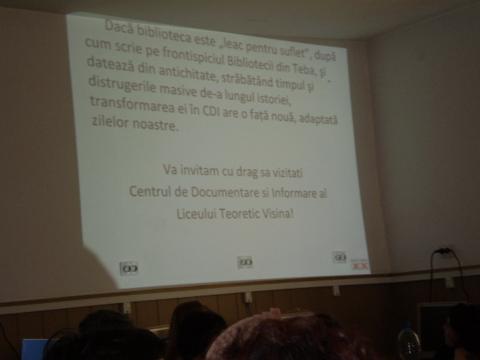 După prezentarea Centrului de Documentare şi Informare, precum şi a modului în care fosta bibliotecă a liceului din comuna Vişina s-a transformat într-un astfel de centru, Vlăduţ Andreescu, reprezentant EUROPE DIRECT a susţinut pe tema Informaţia europeană aproape de noi, precum şi despre modalităţile şi oportunităţile pe care Uniunea Europeană le oferă tuturor cetăţenilor europeni pentru păstrarea identităţii culturale, a tradiţiilor şi obiceiurilor specifice fiecărei comunităţi.